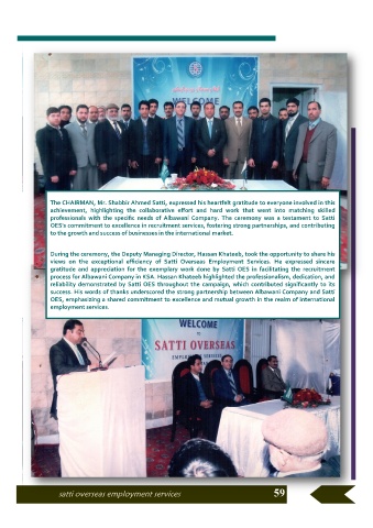 views on the exceptional efficiency of Satti Overseas Employment Services. He expressed sincere